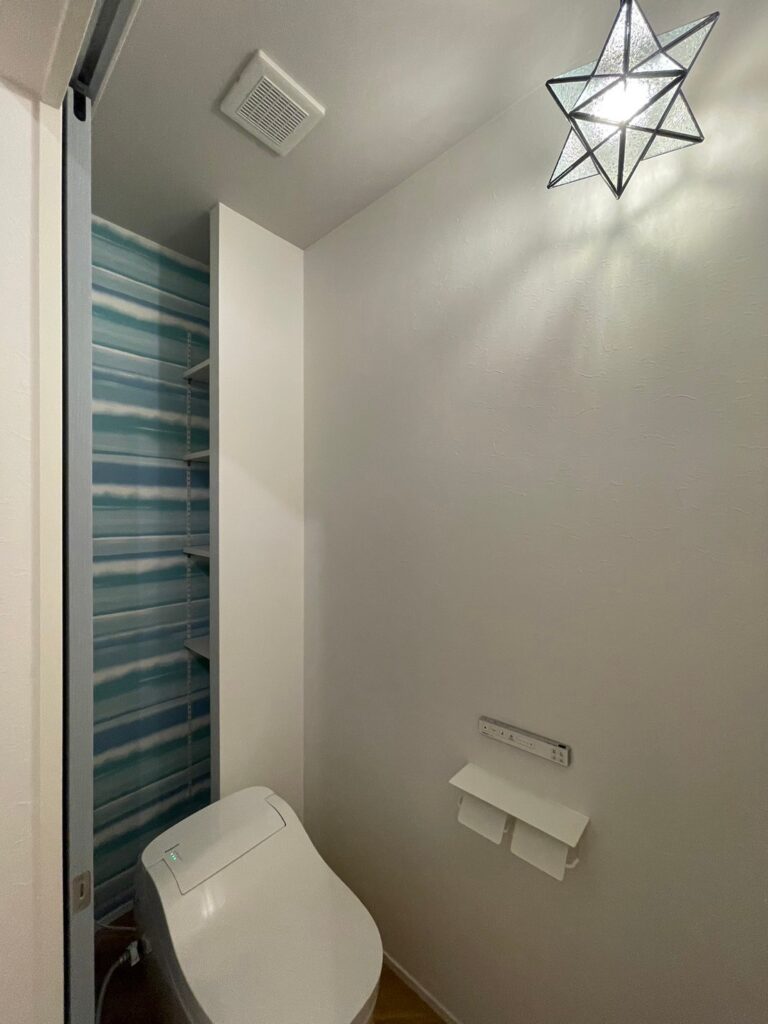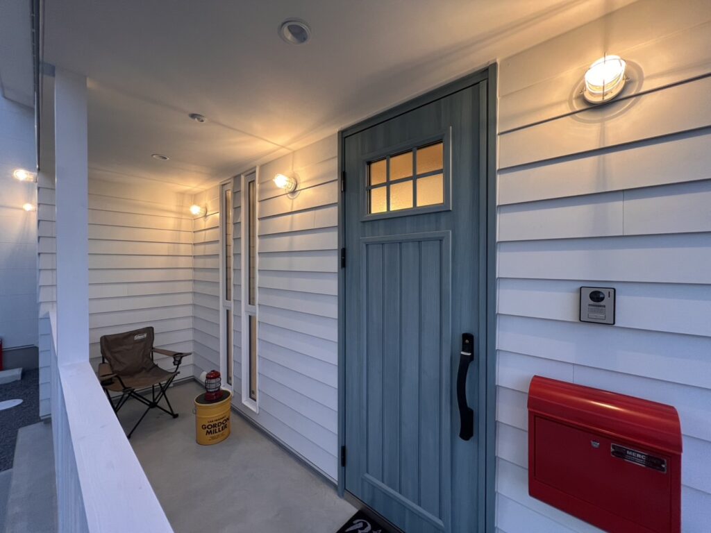 ・白と青を基調としているリゾート感あふれる建具とクロス